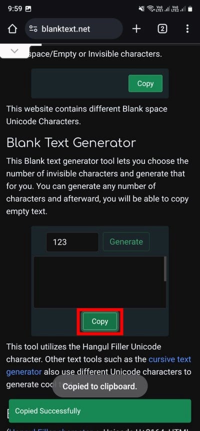 WhatsApp에서 빈 메시지를 보내기 위해 특수 유니코드 문자를 복사할 수 있지만, 그러한 빈 메시지를 보내기 위해 공백을 생성하는 웹사이트가 여러 개 있습니다. 이러한 웹사이트에서는 빈 텍스트로 변환하려는 문자를 입력하고 생성한 다음 WhatsApp으로 보내야 합니다. WhatsApp은 이 메시지를 문자로 읽지만 수신자는 빈 메시지를 받게 됩니다.