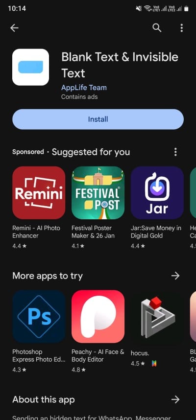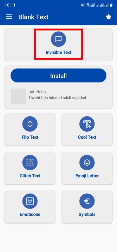 - Play 스토어를 열고 공백 텍스트 및 보이지 않는 텍스트를 검색하세요