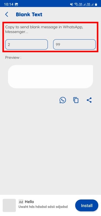 - 행 번호 와 문자 번호를 입력합니다 여기서 행 번호는 빈 메시지를 원하는 행 수를 의미하고, 문자 번호는 빈 메시지의 길이를 의미합니다. 선택할 수 있는 최대값은 99입니다.