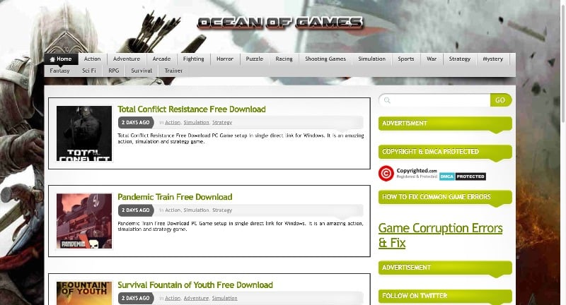 Ocean of Games는 대부분 해킹된 PC 게임을 찾아 무료로 다운로드할 수 있는 해적 사이트입니다. 이 사이트는 GTA, Call of Duty, FIFA 등과 같은 인기 PC 게임 타이틀의 불법 복제 버전을 제공합니다. 최신 게임과 다양한 장르의 대규모 PC 게임 컬렉션을 무료로 찾을 수 있습니다.