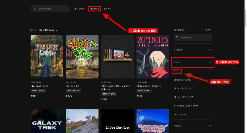 - 찾아보기 탭을 클릭하고 필터로 이동하여 가격을 클릭하고 무료 옵션을 탭하세요.
