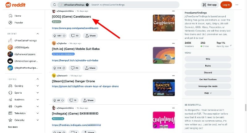 무료 PC 게임 추천을 찾을 수 있는 인기 있는 하위 레딧 중 하나는 r/FreeGameFindings 하위 레딧 입니다 이는 PC용 무료 게임을 찾는 데 유용한 옵션입니다. 하위 레딧 회원은 Steam, Epic Games Store 등과 같은 다양한 플랫폼의 무료 게임에 대한 링크를 게시하는 경우가 많습니다. 일반 게임 웹사이트와 달리 이 하위 레딧은 무료 게임에만 초점을 맞추고 있어 유료 옵션을 분류하지 않고도 쉽게 찾을 수 있습니다.