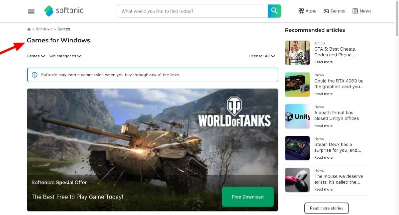 Softonic은 PC 게임 및 기타 PC 소프트웨어를 무료로 찾을 수 있는 인기 있는 웹사이트입니다. 이 사이트는 다양한 장르에 걸쳐 다양한 PC 게임을 제공합니다. Softonic에서 제공하는 모든 게임은 합법적입니다. 이 사이트는 크랙된 버전의 게임을 제공하지 않습니다. 이는 크랙된 PC 게임 버전을 찾는 경우 주의해야 할 사항입니다.