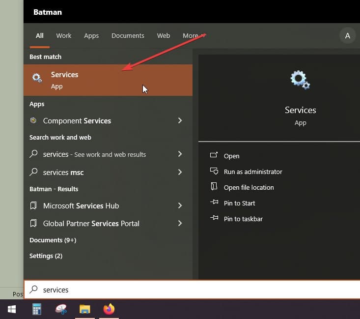1. 시작 메뉴에서 서비스 로 이동합니다.