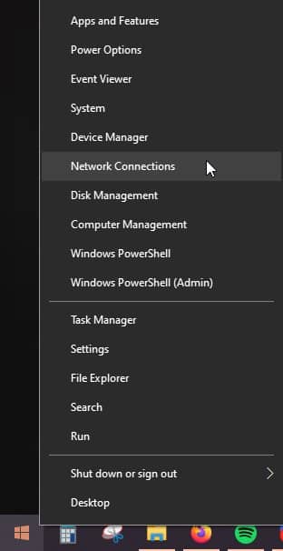 1. Windows + X를 누르고 화면 왼쪽 하단에 열리는 메뉴에서 네트워크 연결을 선택합니다.