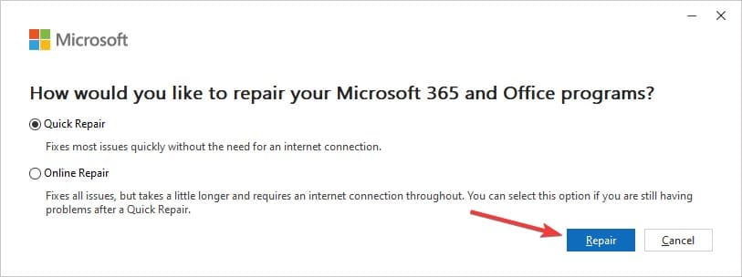 3. 그런 다음 빠른 복구를 선택한 후 복구를 클릭하여 복구 프로세스를 시작합니다.
