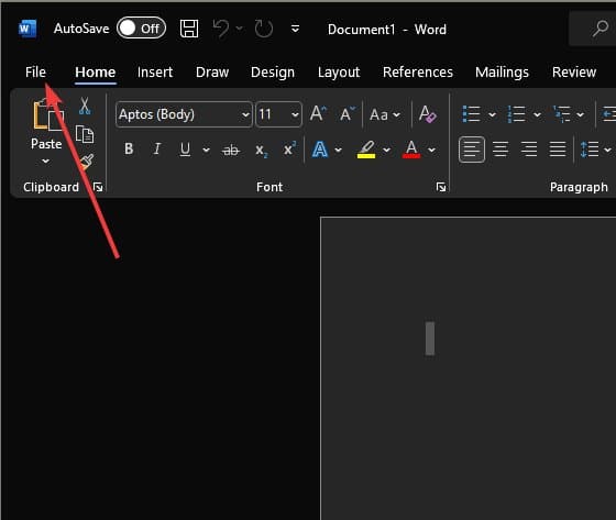 2. 상단 메뉴에서 파일 로 이동합니다.