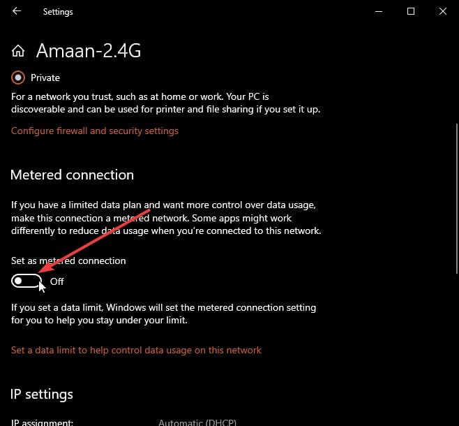 3. 측정 연결 까지 아래로 스크롤 하고 슬라이더 버튼을 통해 해당 연결을 끕니다.