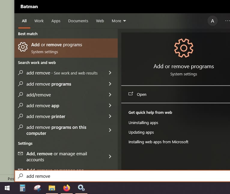 1. 시작 메뉴에서 프로그램 추가 또는 제거 로 이동합니다.