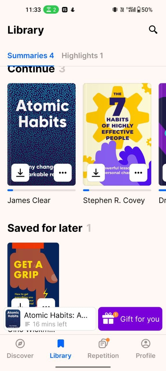 제가 개인적으로 좋아하고 매일 사용하는 앱인 Story Shots부터 시작해 보겠습니다. 저는 2020년부터 이 앱을 사용해왔고, 제가 읽고 싶은 모든 책 요약을 담은 앱이 금세 제 기준 앱이 되었습니다. 앱은 새로운 기능과 UI 새로고침을 통해 시간이 지남에 따라 계속해서 개선되고 있습니다.