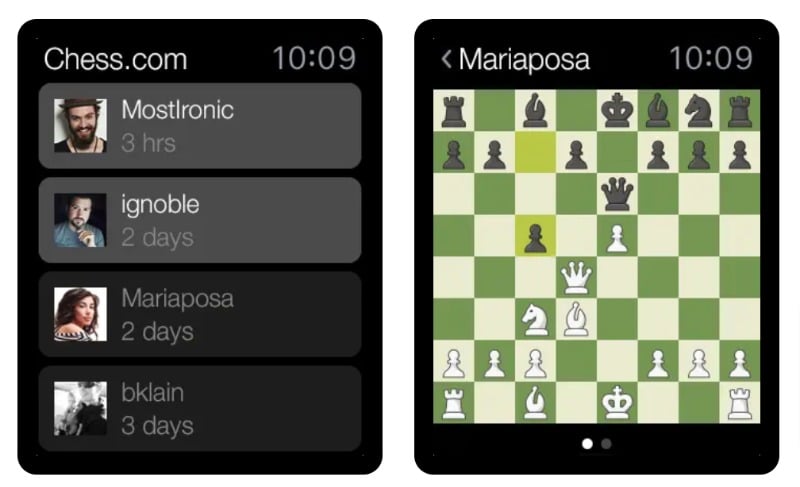 체스는 이 목록에서 제가 가장 좋아하는 게임 중 하나입니다. 오프라인 멀티플레이 모드도 없고, 워치에서는 컴퓨터와 대결할 수 없기 때문에 제가 가장 싫어했던 게임이기도 합니다. 상대를 수동으로 선택하고 상대가 도전을 수락한 경우에만 게임을 플레이해야 합니다. Apple Watch에서 오프라인 플레이를 지원하는 것은 좋은 기능이었지만 누락되었습니다.
