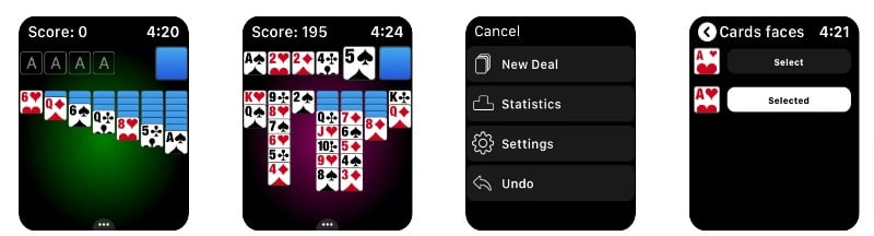 Solitaire를 사용하면 Apple Watch에서 전통적인 카드 게임을 즐길 수 있습니다. 카드를 내림차순으로 정렬하고 정렬하려면 색상을 바꿔야 합니다. 이 게임은 1카드 뽑기와 3카드 뽑기 옵션을 모두 제공합니다. 또한 표준, Vegas 및 누적 채점 시스템을 제공합니다. 이 게임은 또한 다양한 사용자 정의 옵션을 제공합니다. 왼손잡이 및 오른손잡이 플레이어의 배경, 카드 앞면, 카드 뒷면 및 레이아웃 옵션을 사용자 정의할 수 있습니다.