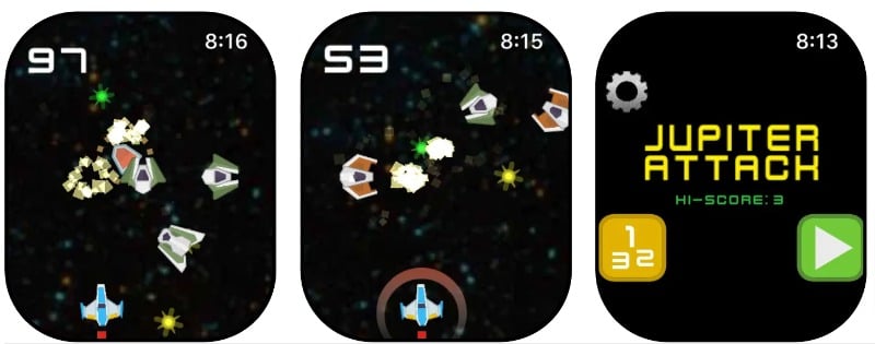 Kepler Attack의 최신 버전을 찾고 있다면 Jupiter Attack이 최고의 Apple Watch 게임입니다. 게임의 배경은 우주이며, 우주선을 이용해 침략자들을 공격해야 합니다. 멀티샷, 쉴드, 속사 등의 파워업을 통해 우주선의 강도를 높일 수 있습니다. 디지털 크라운을 사용하여 게임을 제어할 수 있습니다. 이 게임은 iPhone에서 사용할 수 있습니다. 향수를 불러일으키는 게임 경험을 향상시키는 복고풍 아케이드 그래픽과 음향 효과가 특징입니다. 게임 가격은 1.99달러입니다.