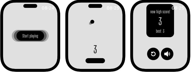 Hit The Island는 간단하고 매력적인 아케이드 스타일의 Apple Watch용 게임입니다. 주요 목표는 공으로 움직이는 섬을 치는 것입니다. 이 게임은 다양한 레벨을 제공합니다. 이 게임은 Apple Watch에 잘 어울리는 검은색과 회색 테마로 최소한의 그래픽을 제공합니다.