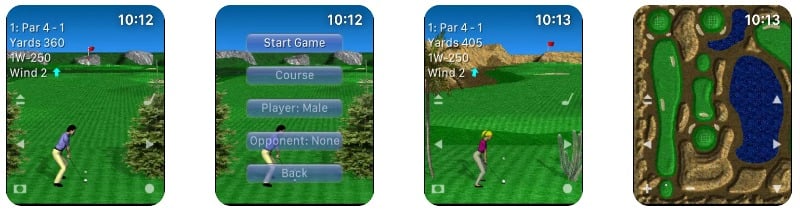 Par 72 Golf Watch는 Apple Watch의 또 다른 골프 게임입니다. 이 게임은 캐릭터, 산, 사막, 바다 풍경을 포함하여 Mini Golf보다 약간 더 나은 그래픽을 제공합니다. 함께 플레이하고 싶은 플레이어와 상대를 선택할 수 있습니다. 화면을 스와이프한 후 손을 떼면 공을 칠 수 있습니다.