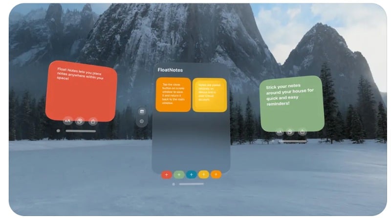 Float Notes는 애플 비전 프로를 위한 간단한 스티커 메모 앱입니다. 이를 사용하여 환경의 어느 곳에나 스티커 메모를 첨부할 수 있습니다. 주방, 침실 등에 메모를 배치할 수 있습니다. 메모는 메모한 위치에 붙어 있으므로 기억할 수 있는 유연성이 있습니다. 이 앱은 간단하고 사용하기 쉽습니다. 투명한 디자인을 제공하며 동시에 여러 개의 스티커 메모 창을 지원합니다.