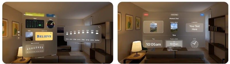 위젯을 사용하면 앱을 열지 않고도 정보에 빠르게 액세스할 수 있습니다. 그리고 Widget Smith 앱은 Vision Pro를 위한 광범위한 위젯 컬렉션을 제공합니다. 주변 어느 곳에나 위젯을 배치할 수 있습니다.