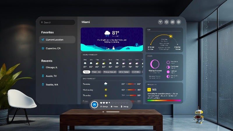 Apple Vision Pro에는 날씨 앱이 내장되어 있지 않습니다 그렇기 때문에 날씨 정보를 얻으려면 타사 앱에 의존해야 합니다. Carrot 날씨 앱은 Vision Pro를 위한 최고의 날씨 앱입니다.