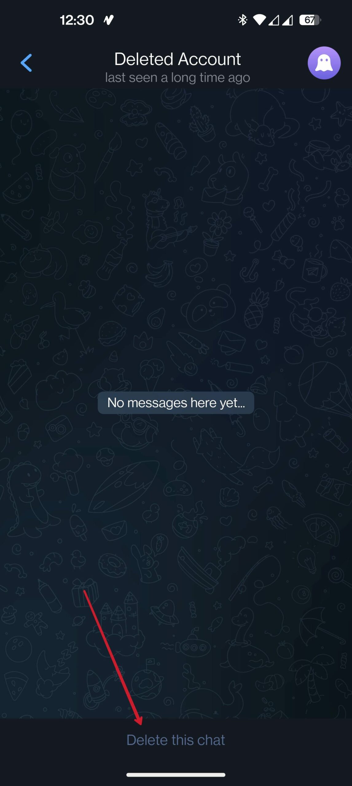 또한, 누군가 텔레그램 계정을 삭제한 경우에는 그 사람에게 어떤 메시지도 보낼 수 없습니다. 그러나 계정이 아닌 앱만 삭제한 경우에는 아무런 문제 없이 메시지를 보낼 수 있습니다. 또한, 비활성화된 계정의 경우 하단 채팅바 대신 채팅 삭제 옵션이 제공됩니다. 이것 역시 계정이 삭제되었음을 확인합니다.